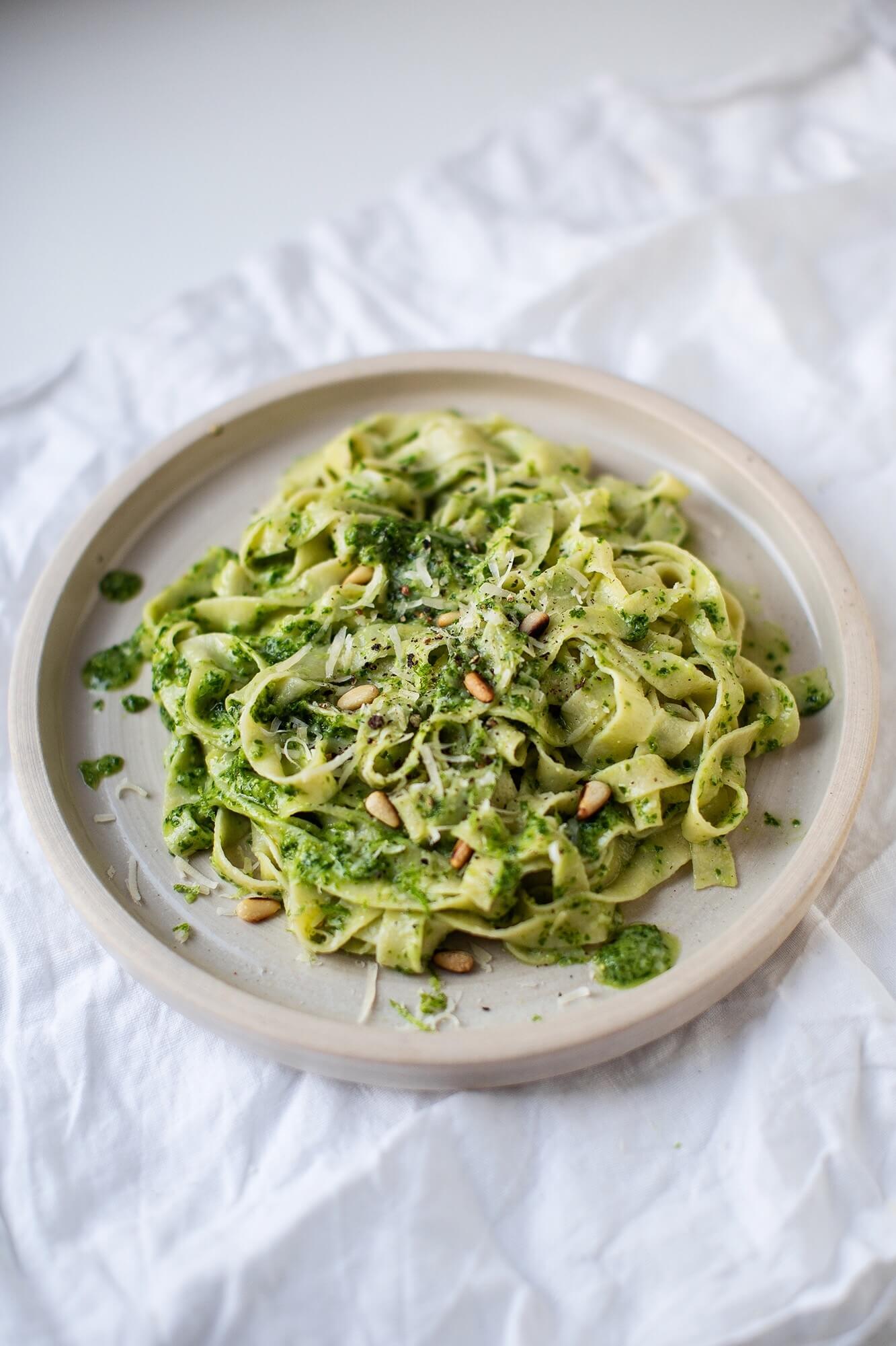 "alt": "Przepis na pastę z pesto i jarmużem (fot. Ula Demczuk)",