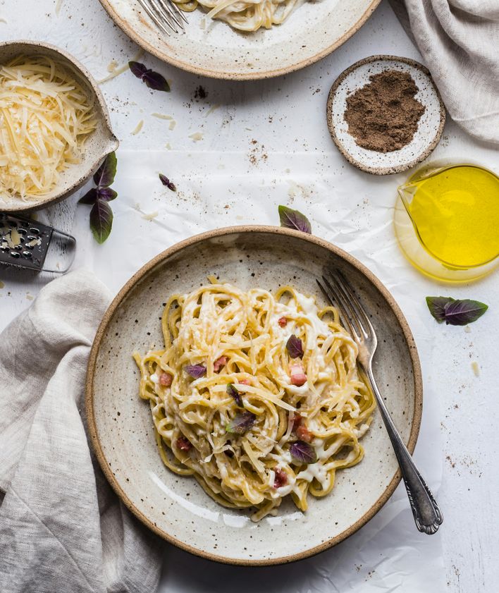 "title": "Fettuccine alla papalina - makaron carbonara ze śmietanką po włosku",