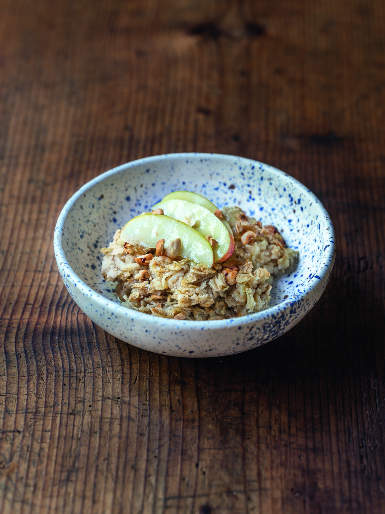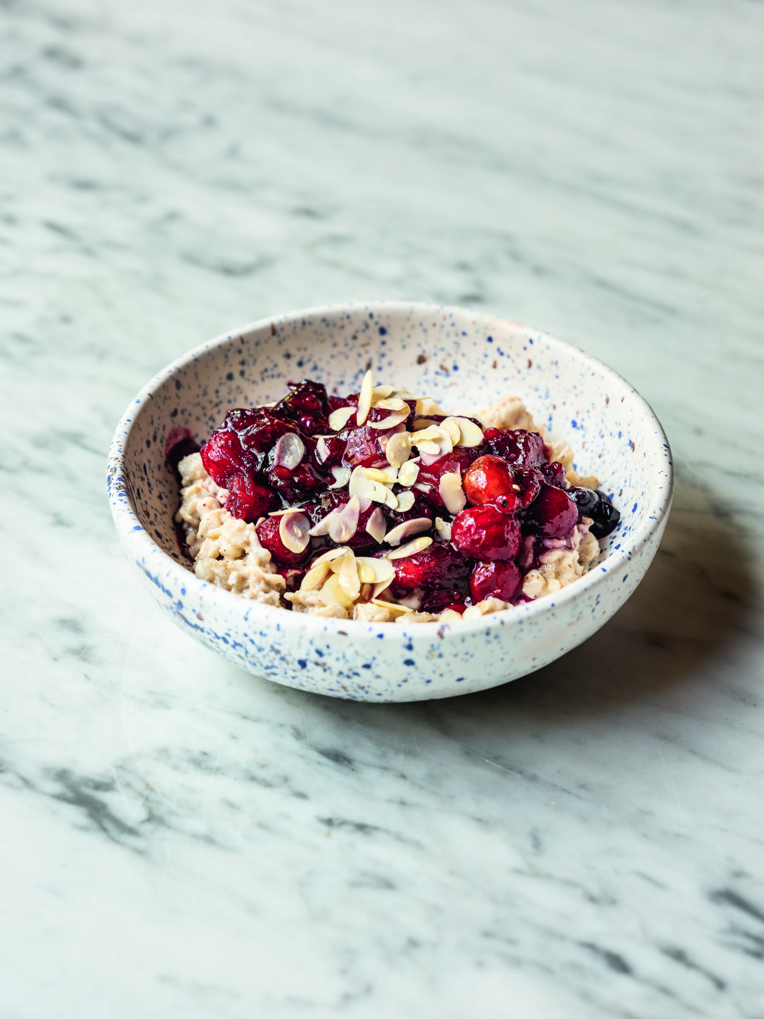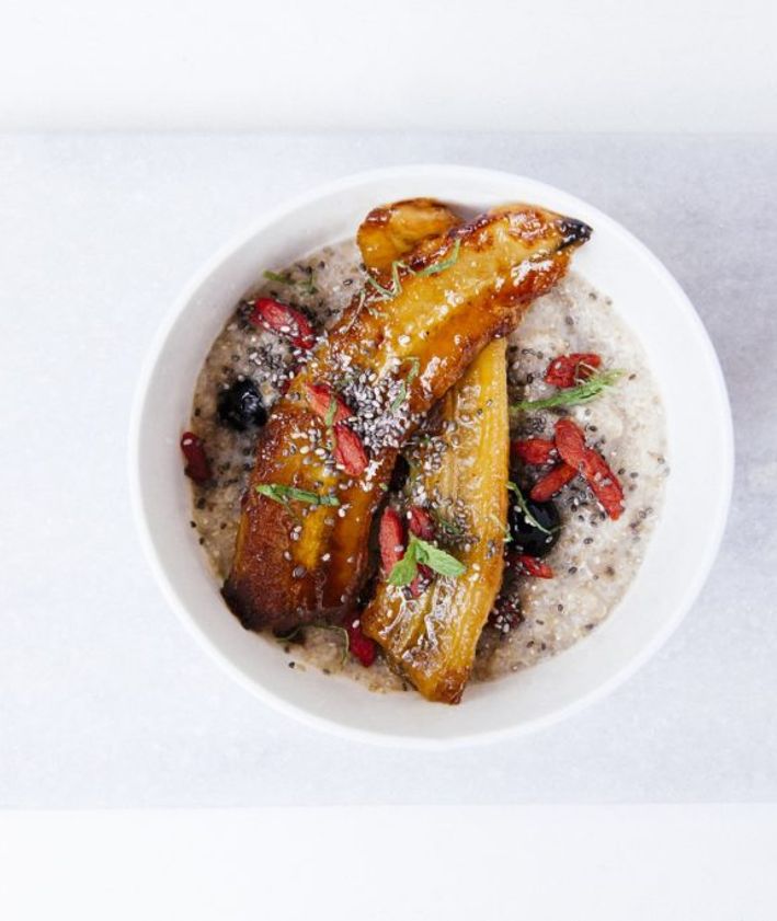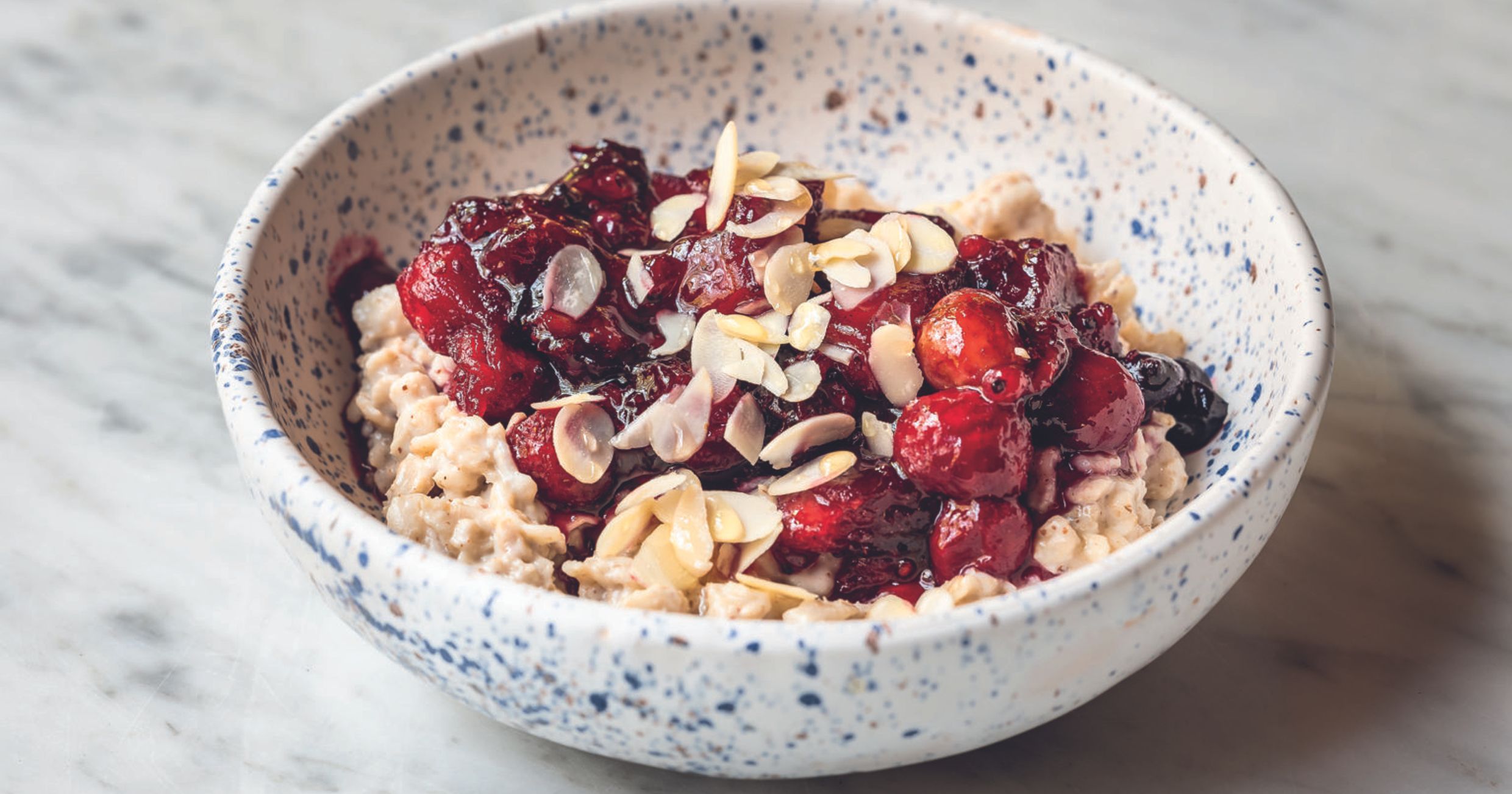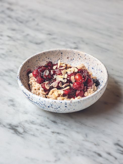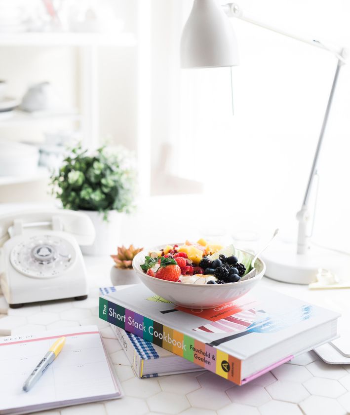 "alt": "książka kucharska z położoną na niej miską owoców",