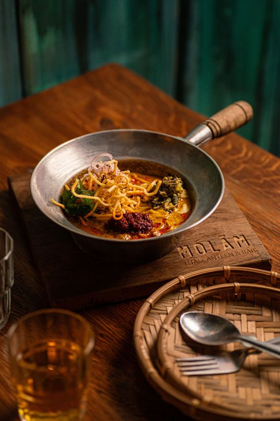 "content": "<h2><a href=\"https://molam.pl/en/about-us/\">Molám (Kraków)</a></h2>\n<p>Jeśli chcecie się poczuć jak podczas jednej z parnych nocy w Bangkoku, kiedy wstępujecie do głośnej lokalnej knajpki, by coś przekąsić – to adres dla was. Pełna nazwa restauracji nie bez powodu brzmi Molám Thai Canteen & Bar. Rzeczywiście, klimat, wystrój, a przede wszystkim jedzenie przywodzą na myśl tajskie lokale – takie, do których chce się wracać podczas każdej podróży. Jak dobrze, że możemy przenieść się do Tajlandii także w Krakowie! Menu jest tu krótkie i oparte na wyrazistych smakach.</p>\n<p>Tomasz Muza zaprojektował kartę tak, aby można było wpaść tu z grupką znajomych i dzielić się wszystkim, co pojawi się na stole. A smacznych zaskoczeń nie zabraknie, ponieważ karta jest prawdziwym popisem kreatywności szefa. Mimo orientalnego klimatu wiele produktów pochodzi od lokalnych producentów – składniki świetnie wpasowują się w azjatycki charakter menu, tworząc na talerzach niezwykle smaczne kompozycje. Jeśli szukacie miejsca wyjątkowego, oryginalnego i z ciekawym charakterem, Molám to doskonała propozycja.</p>",