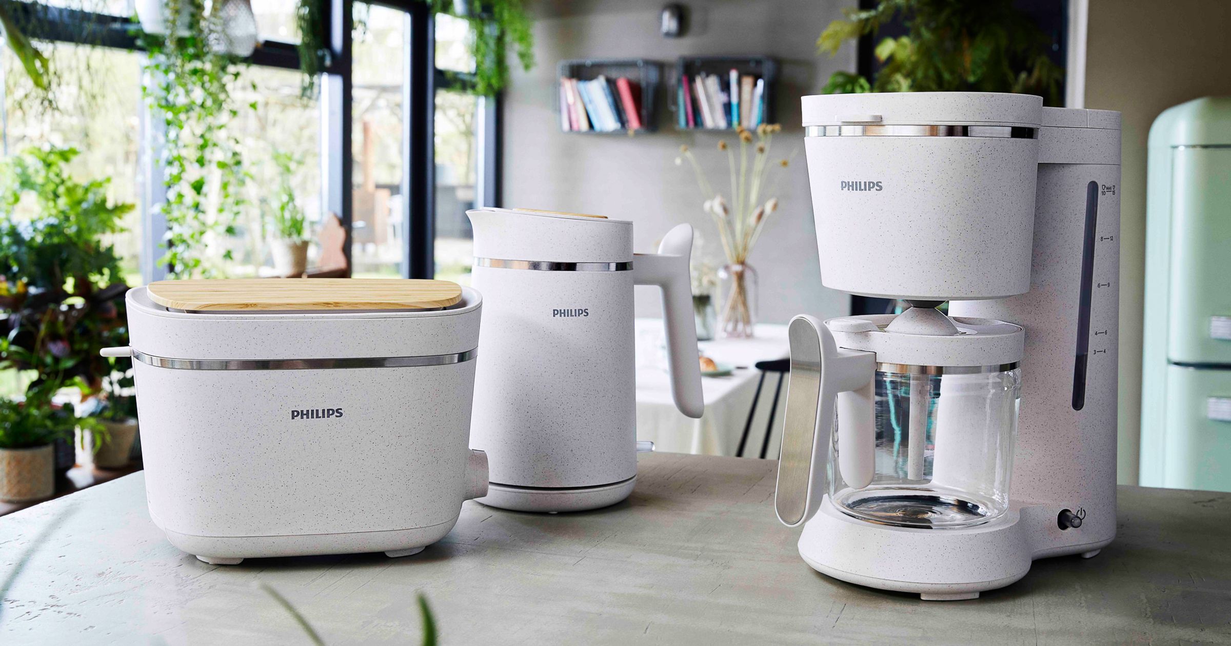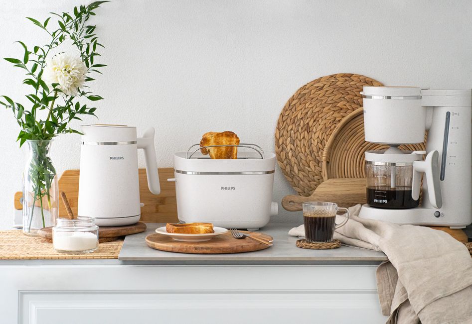 "alt": "Ekologiczna kolekcja śniadaniowa marki Philips – toster, ekspres przelewowy i czajnik (fot. materiały prasowe)",