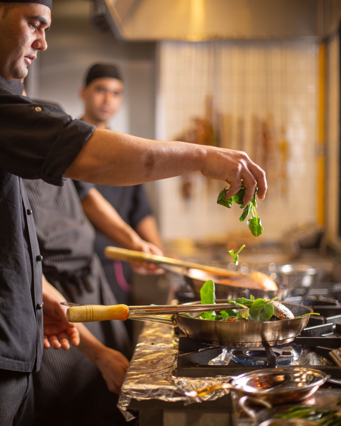 "content": "<p>Praski lokal ma otwartą kuchnię, co pozwala na obserwowanie kucharzy podczas pracy. Goście mogą się przyglądać, jak powstają zamówione przez nich dania, i podziwiać zręczność, sprawność i tempo pracy kucharzy. Bombaj Masala, oprócz tradycyjnej karty, od poniedziałku do piątku oferuje lunche, które obejmują zróżnicowane, obfite i smaczne posiłki w dwóch wersjach (klasycznej i wege). Lubimy na nie chadzać, podobnie jak na śniadania, serwowane w weekendy w godzinach 10-13 – jakże inne od europejskich! Ciekawą propozycją są również przekąski w wersji tapas, dzięki którym można odkryć jeszcze więcej intrygujących smaków. Fanów nieoczywistych rozwiązań aranżacyjnych urzeknie sufit, pod którym zawieszono 1760 miedzianych rur. Robią imponujące wrażenie! </p>\n<p><em>Więcej praktycznych informacji znajdziecie na profilu Bombaj Masala Praga w mediach społecznościowych (<a href=\"https://www.facebook.com/BombajMasalaPraga\" rel=\"nofollow noopener\" target=\"_blank\">Bombaj Masala na Facebooku</a>, <a href=\"https://www.instagram.com/bombaj_masala_praga\" rel=\"nofollow noopener\" target=\"_blank\">Bombaj Masala na Instagramie</a>). </em></p>",