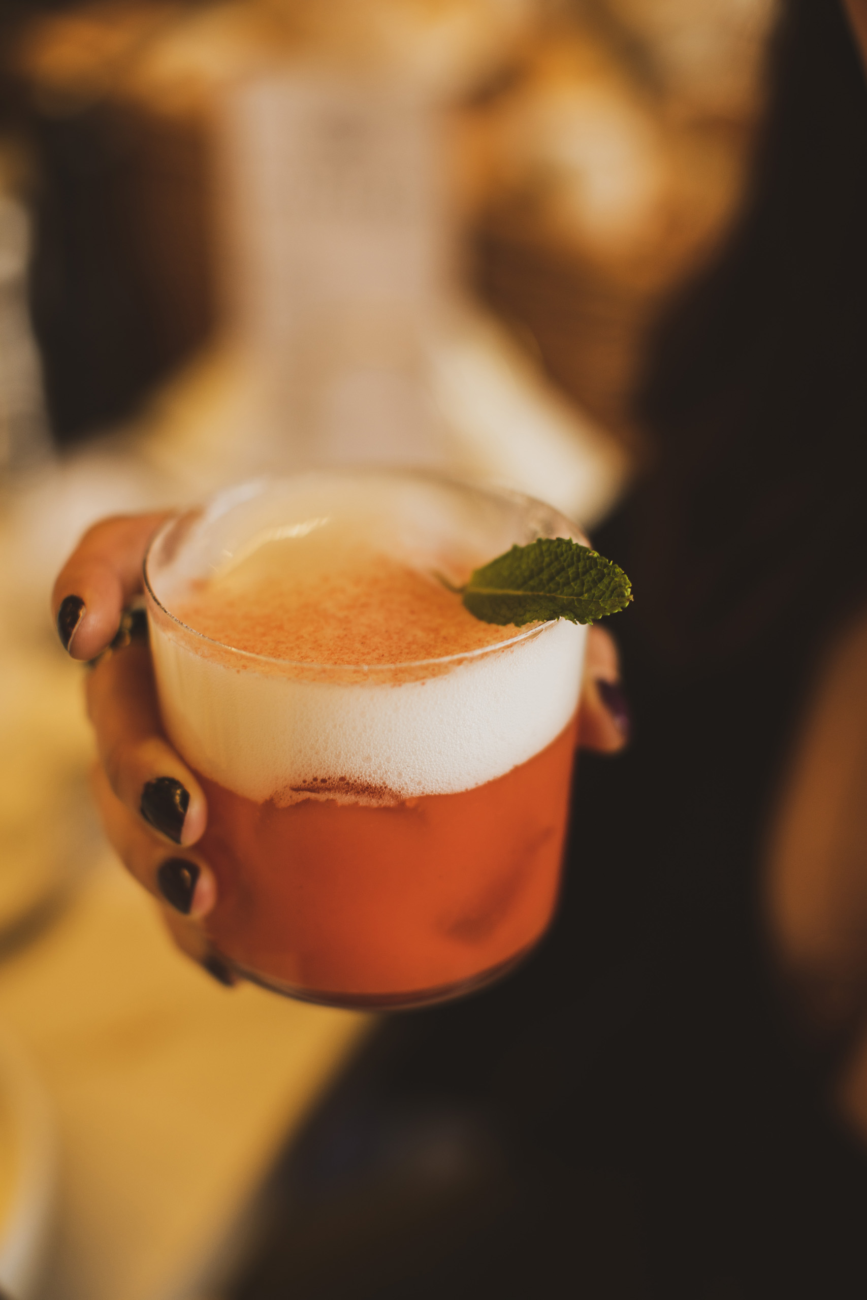 "title": "Bombay - koktajl spring sour, koktajl na bazie ginu, naparu z herbaty sakura i syropu z rabarbaru",