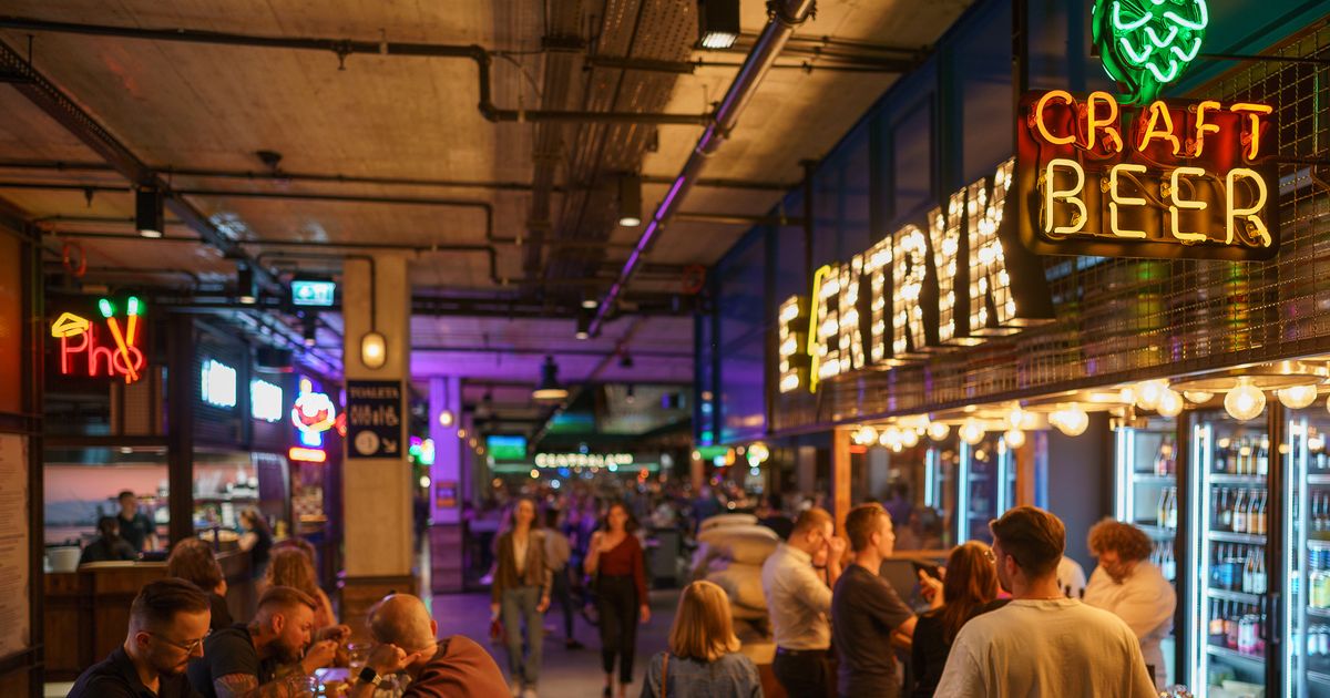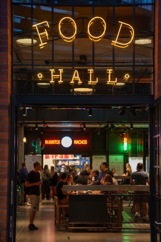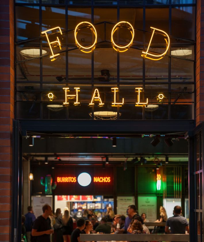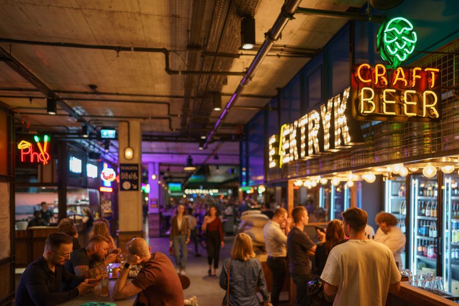 "alt": "Wnętrze food hallu w Elektrowni Powiśle",
