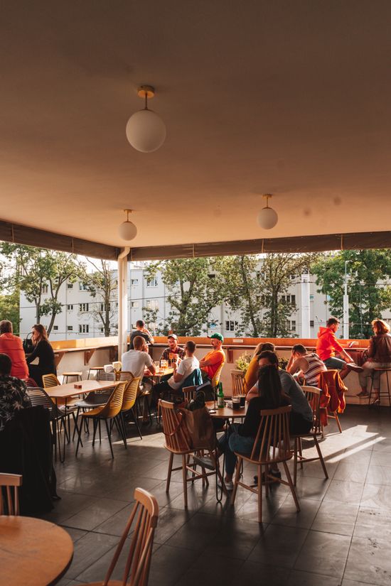 "alt": "Wnętrza baru w Warszawskiej Elektrowni Powiśle",
