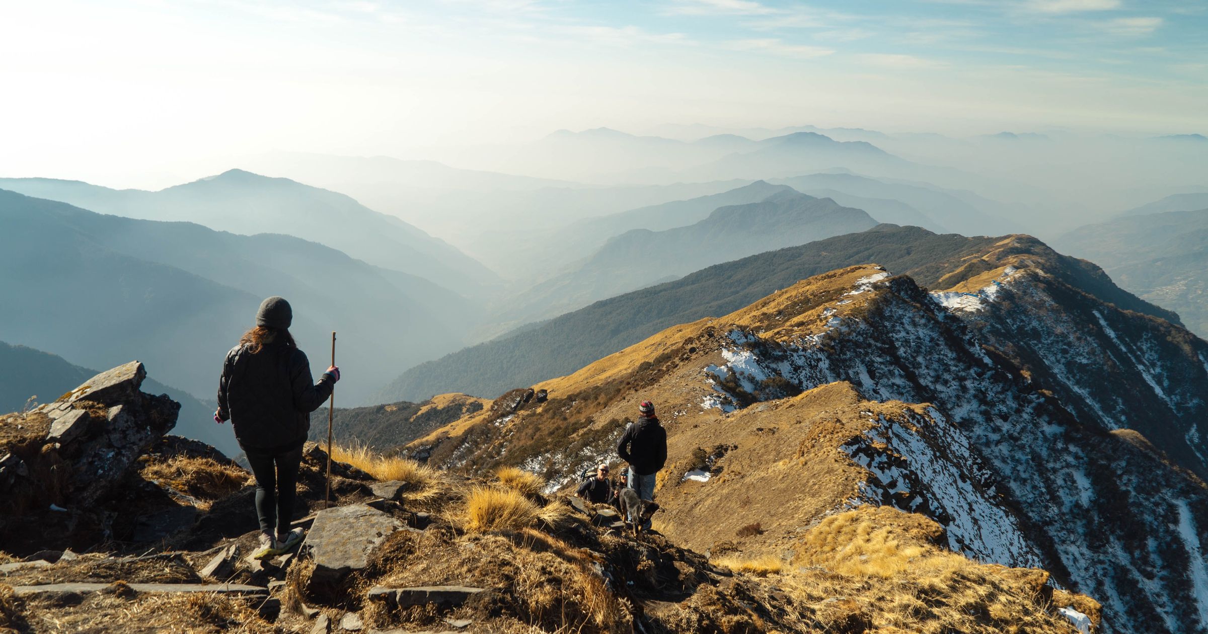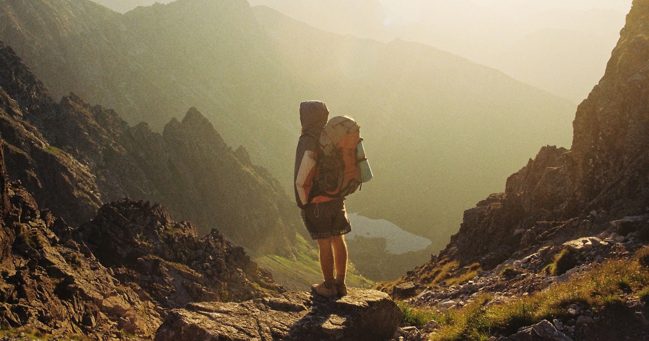 "alt": "Mężczyzna z plecakiem stojący na szczycie góry (fot. Christopher Burns / unsplash.com)",