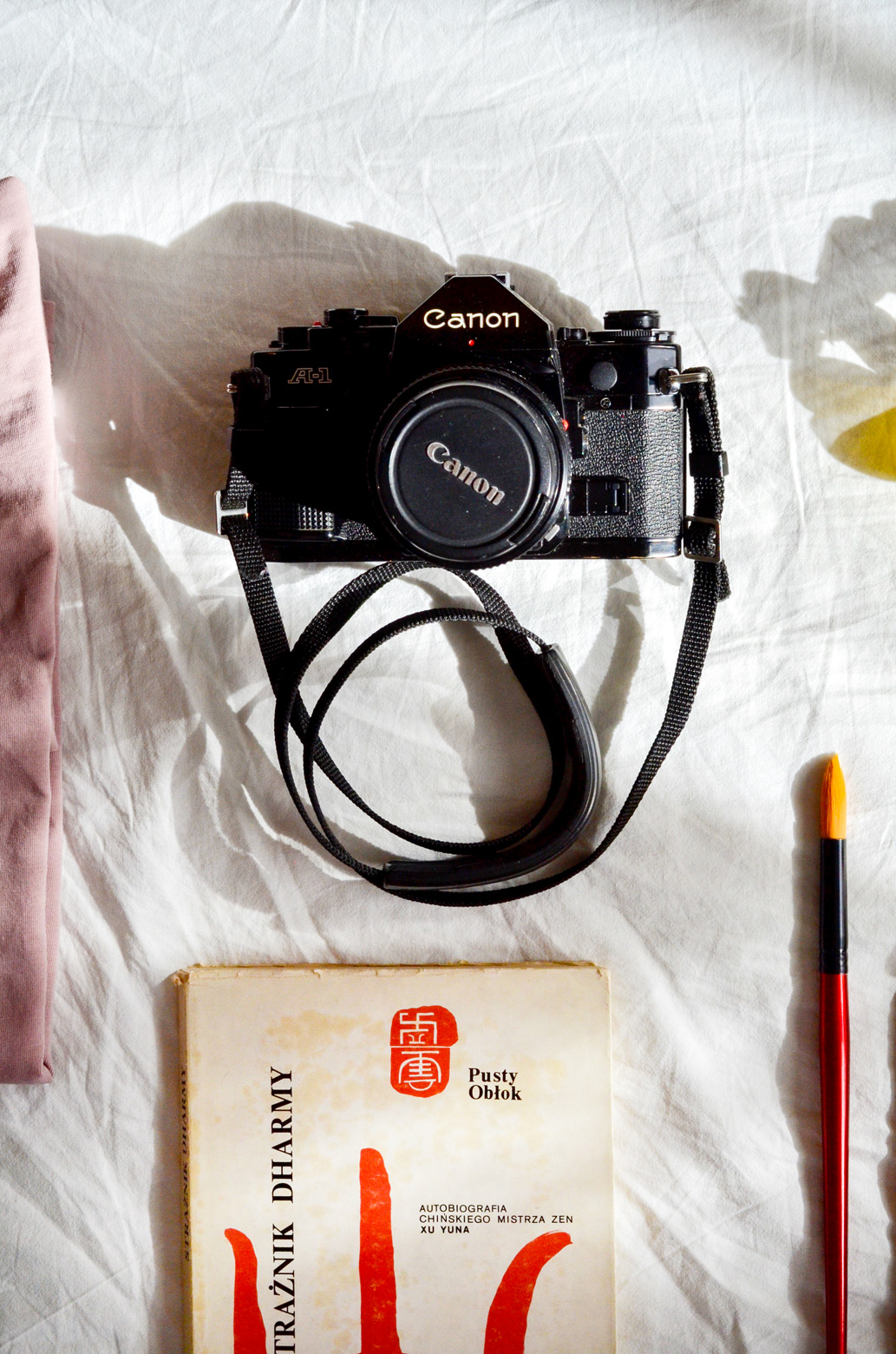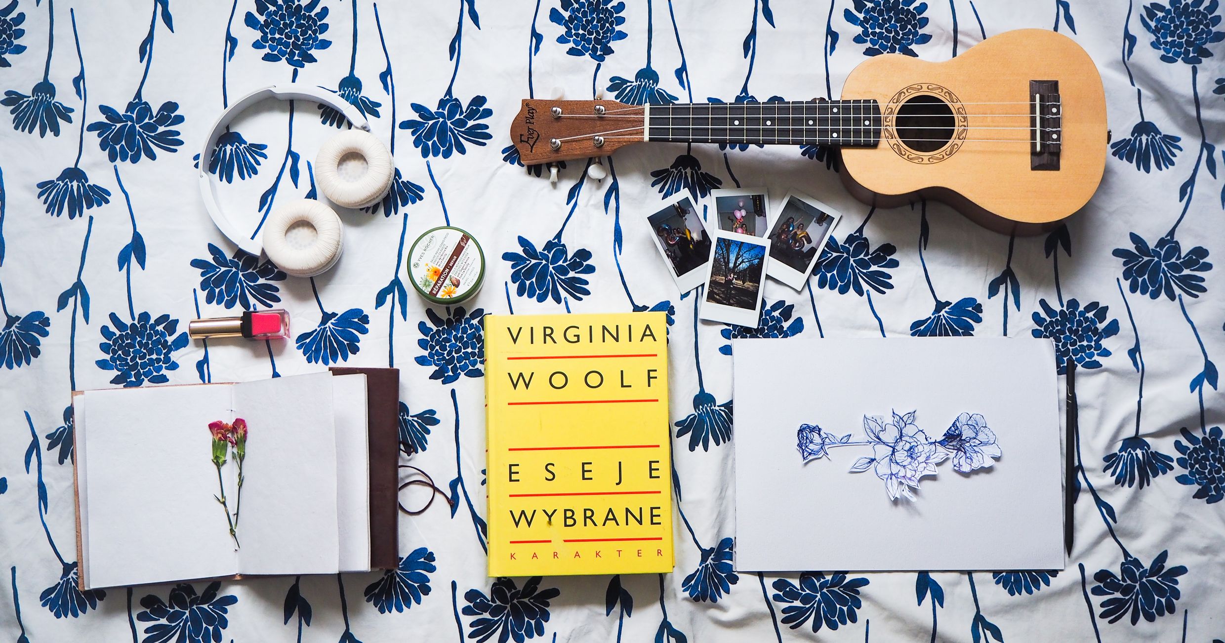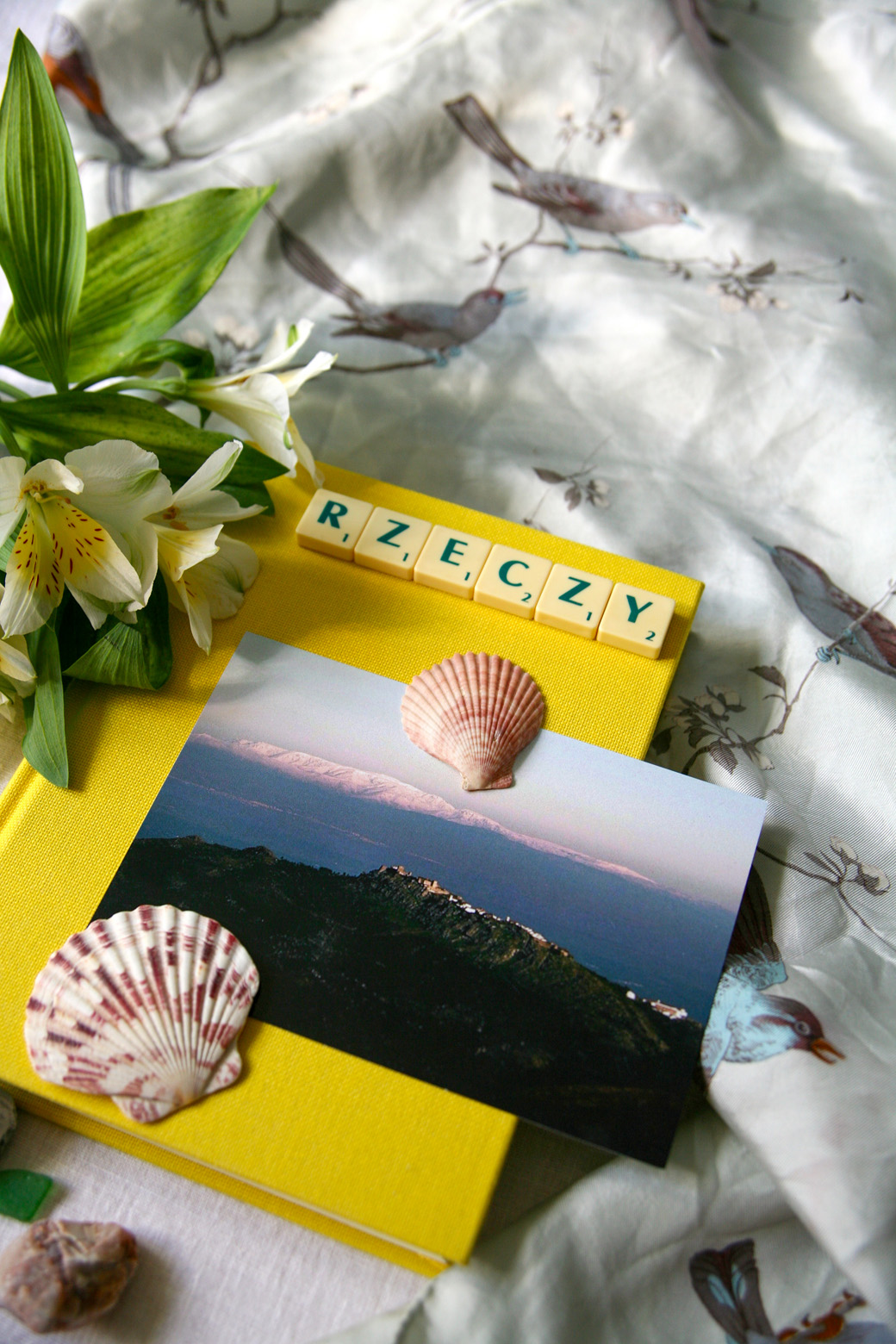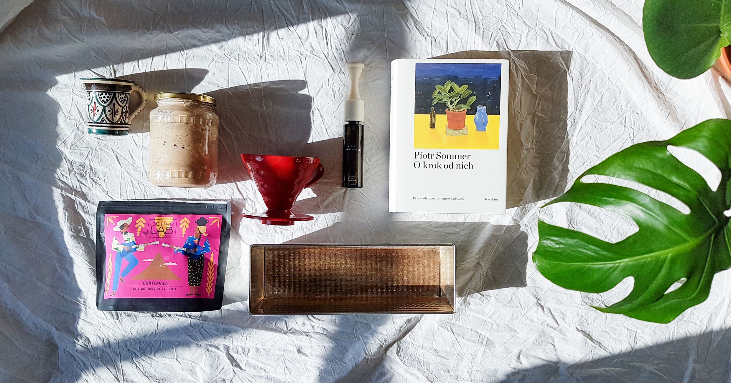 "alt": "Różne przedmioty takie jak książki, zakładki do książek i szczotki do ciała (fot. Ola Koperda)",