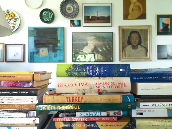 "alt": "Stosy książek Bartka Kieżuna (fot. Bartek Kieżun)",