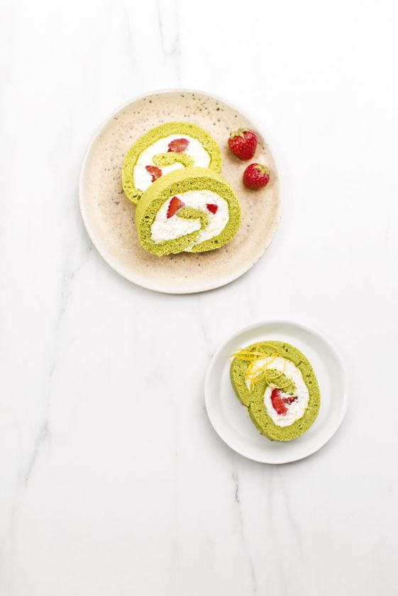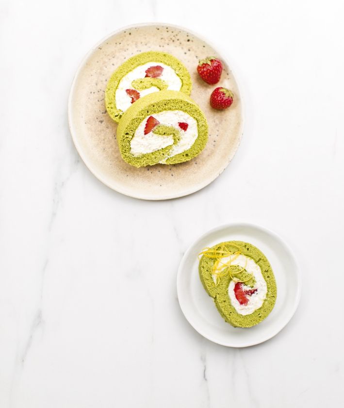 "title": "Rolada biszkoptowa z matchą i truskawkami",