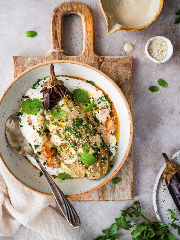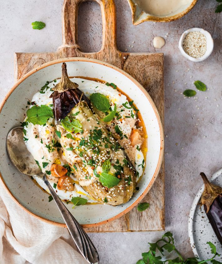 "site_title": "Pieczone bakłażany z labneh i sosem sezamowym",