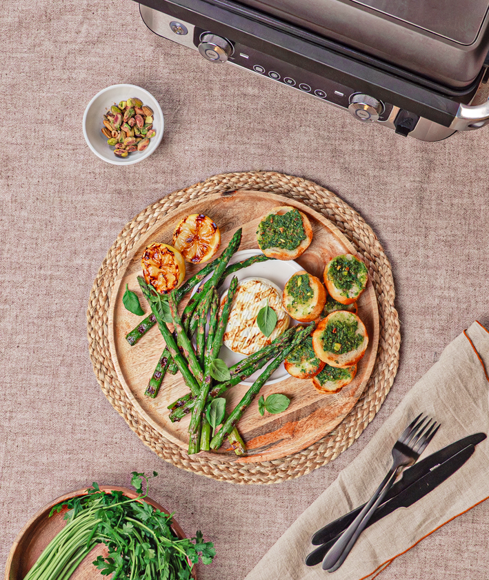"Labneh doprawiamy solą i pieprzem. Ser rozsmarowujemy na talerzach. Układamy na nim bakłażany. Całość polewamy sosem, posypujemy sezamem, natką pietruszki oraz listkami mięty.\nTIP: Te bakłażany w bliskowschodnim stylu możesz podawać z tostami lub ulubioną kaszą."