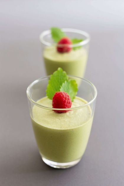 "meta_description": "Zielony krem na bazie białek czekolady i herbaty matcha smakuje równie dobrze, jak wygląda! Spróbujcie, jak smakuje ze świeżymi malinami lub udekorujcie go innymi owocami według uznania.",