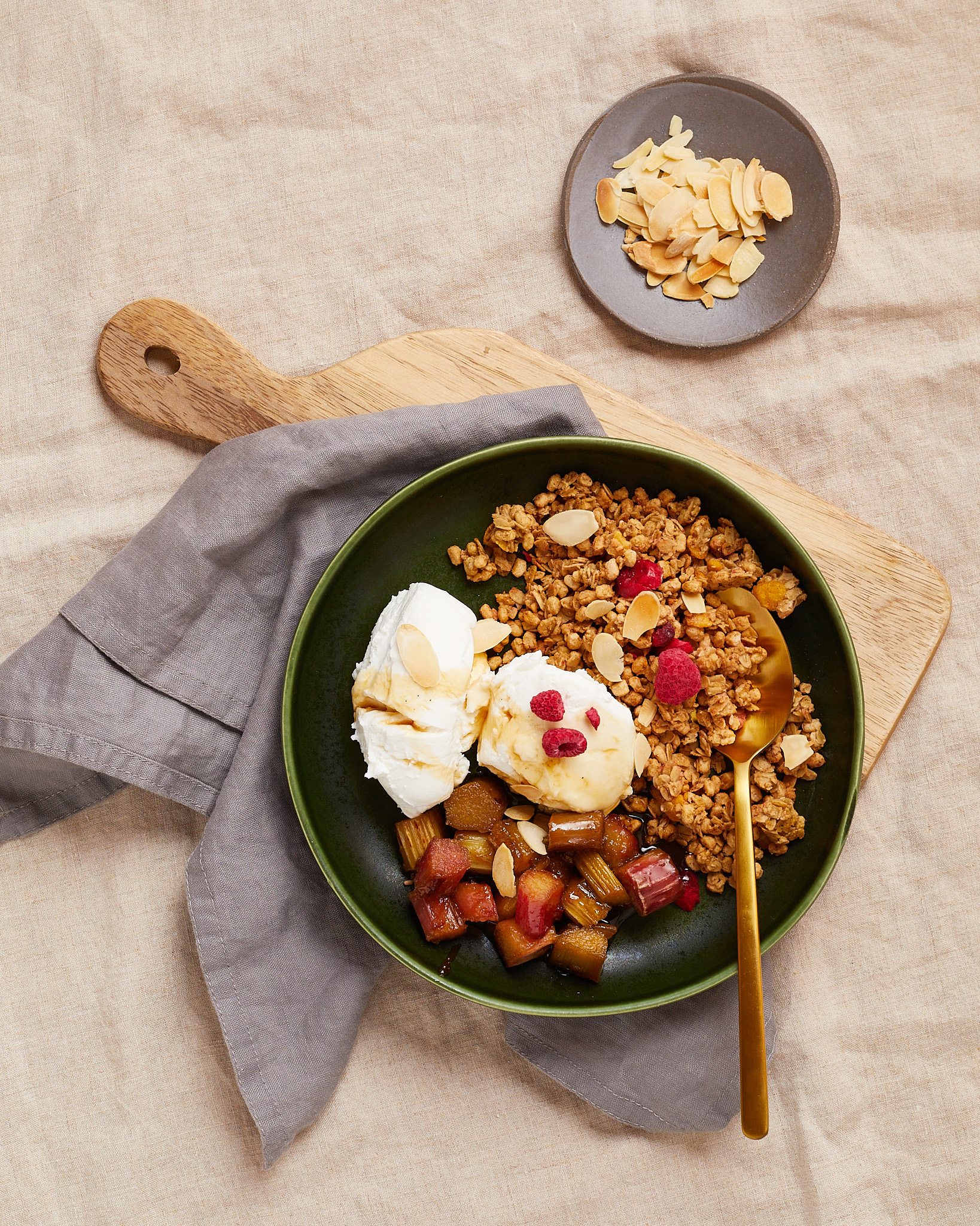 "title": "Jogurt z granolą i rabarbarem z patelni – przepis",