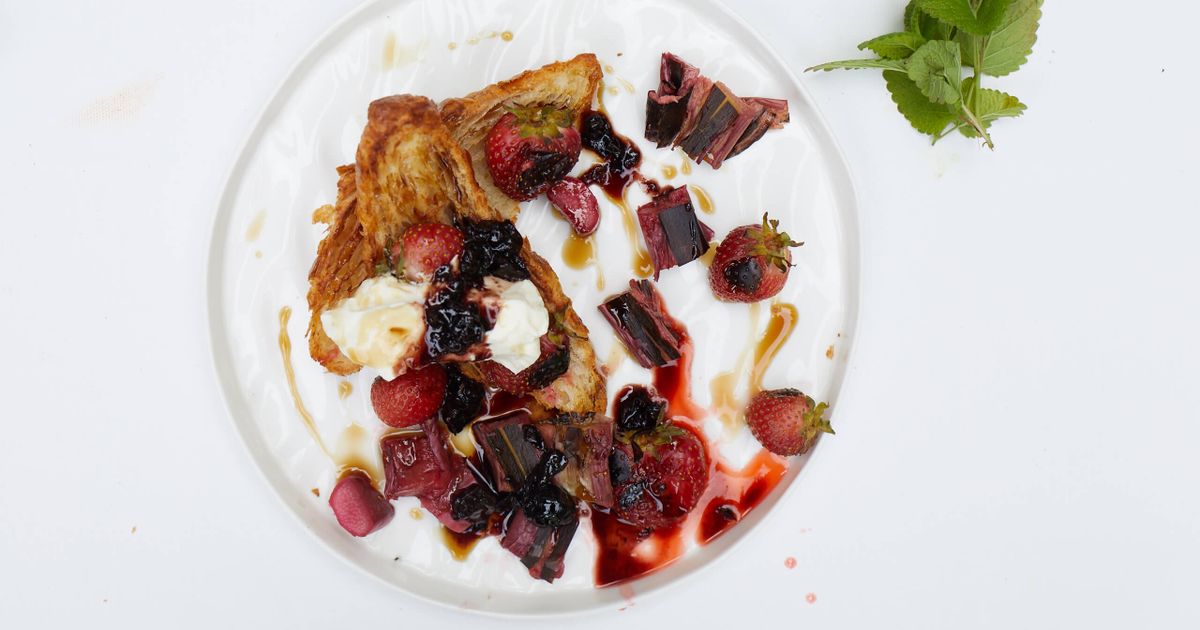 "title": "Jogurt z granolą i rabarbarem z patelni",