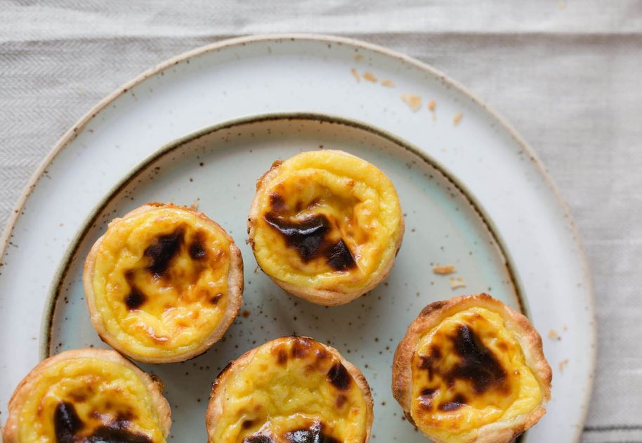 "alt": "pasteles de nata, pastele, portugalskie słodycze, tarta budyniowa, ciasto francuskie, prosty deser",