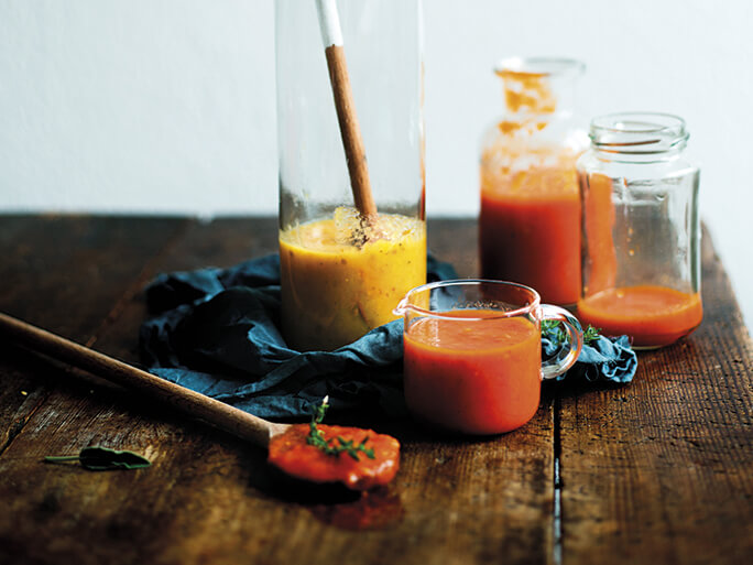 "Ząbki upieczonego czosnku wyjmujemy z łupinek. Warzywa przekładamy do blendera, dodajemy bazylię i blendujemy do osiągnięcia oczekiwanej konsystencji. Doprawiamy do smaku. "