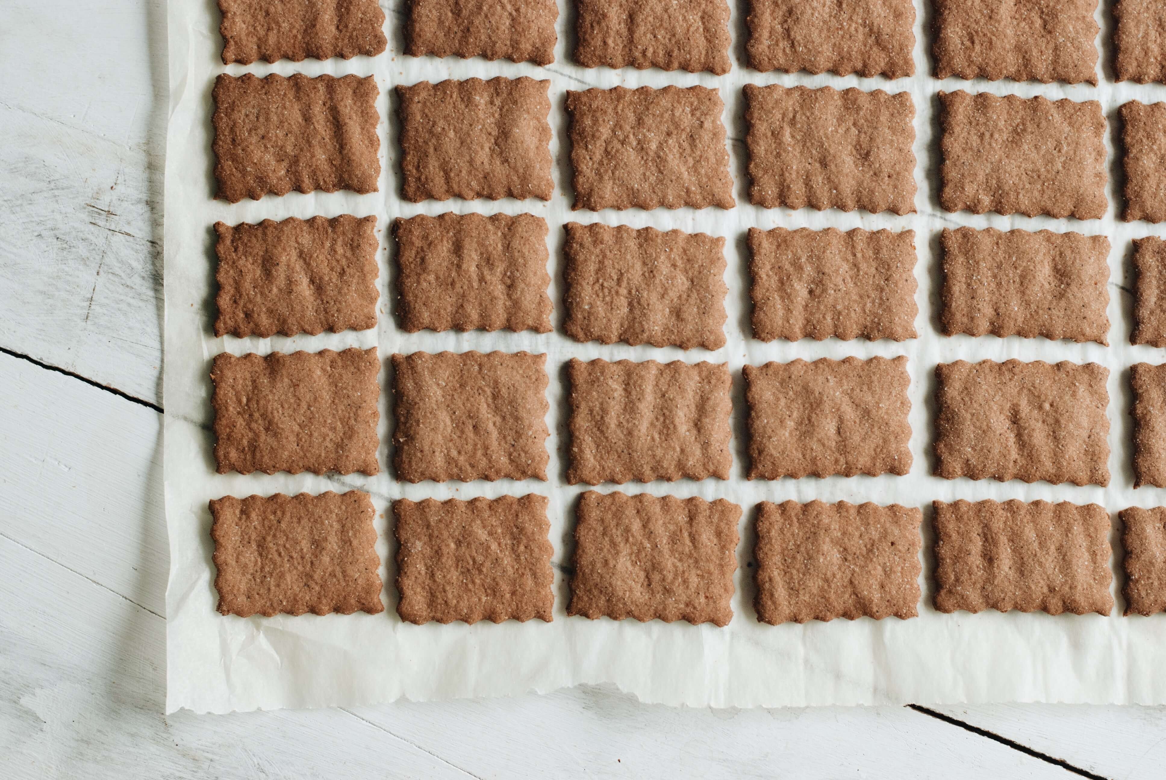 "Po schłodzeniu wałkujemy ciasto na podsypanym mąką gryczaną blacie, na grubość ok. 4 mm. Wycinamy herbatniki foremką do ciastek lub radełkiem. Przekładamy na papier do pieczenia i pieczemy 7 minut w 190°C, uważając, by ciasteczka nie przypaliły się.\nWięcej przepisów Karoliny znajdziecie na blogu Lisia Kawiarenka >>\n "