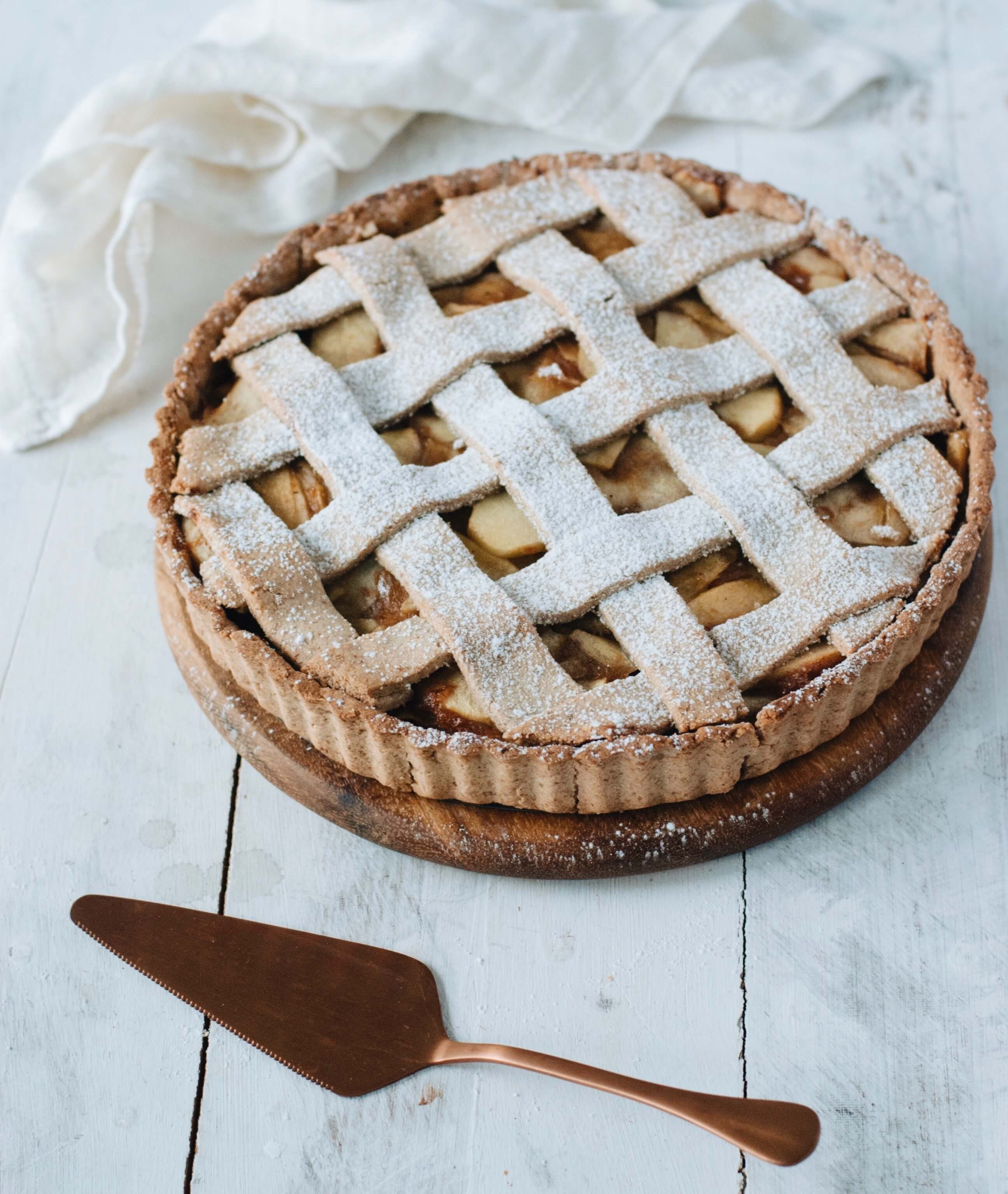 "alt": "Sprawdzony i prosty przepis na kruche ciasto z jabłkami i kremem budyniowym. Sprawdź przepis na tartę jabłkową z kremem budyniowym (fot. dinnershow.studio)",