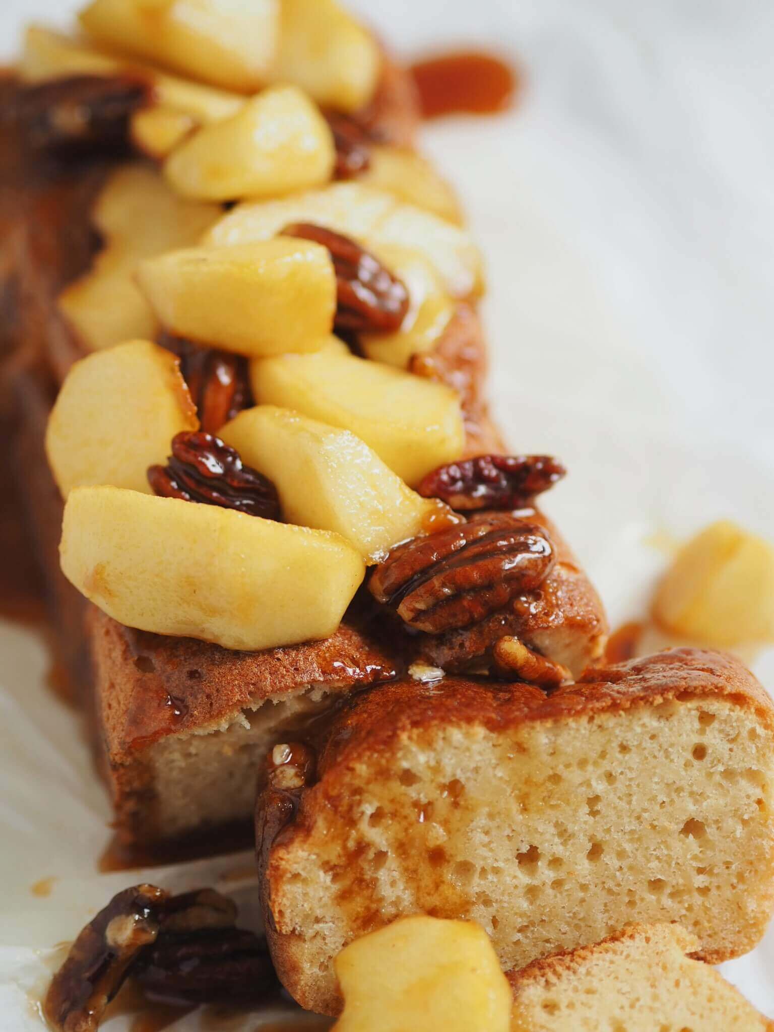 "alt": "Szybki biszkopt japoński z jabłkami, odwrócony miodowy biszkopt japoński z jabłkami i pekanami (fot. Ola Jagłowska)",