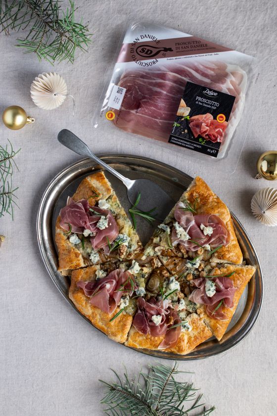 "title": "Galette z gruszką, serem blue, prosciutto i orzechami włoskimi",