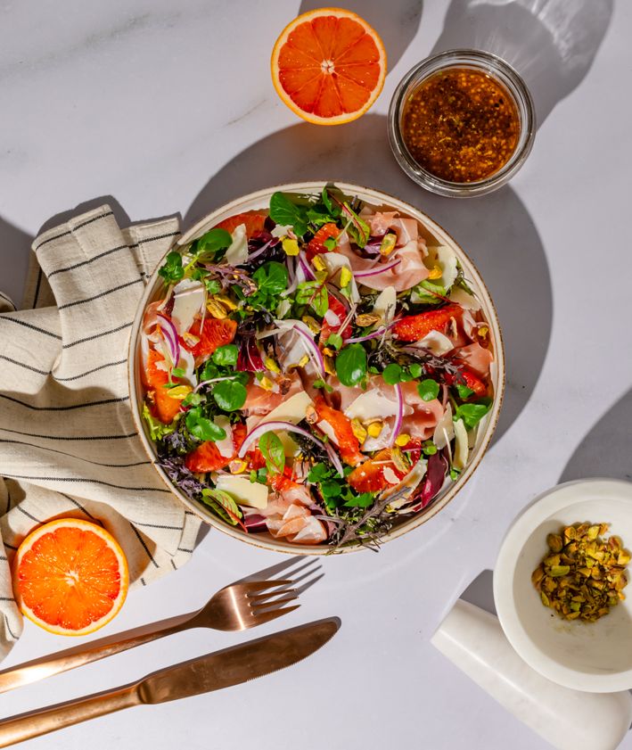 "Po wyjęciu z piekarnika przekładamy brukselkę do miski, dodajemy pestki granatu, polewamy pozostałym dressingiem i posypujemy serem."