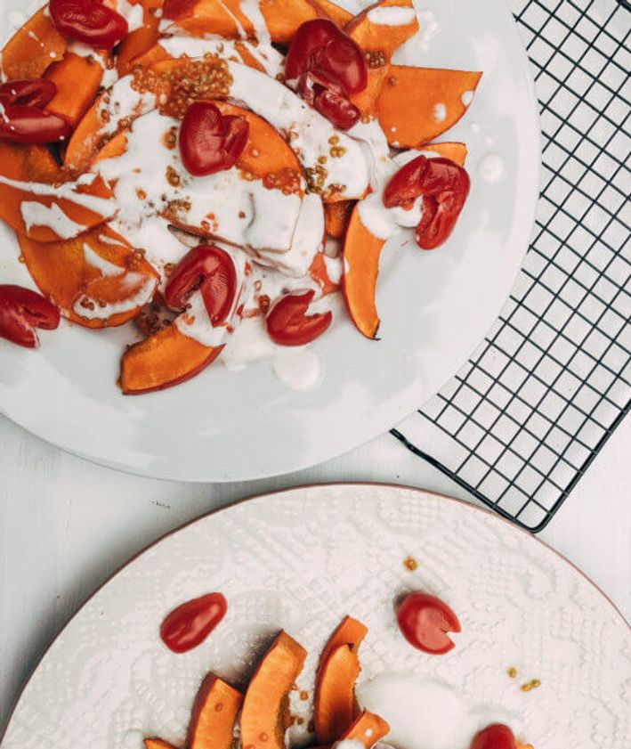"title": "pieczona dynia z kardamonowym jogurtem",