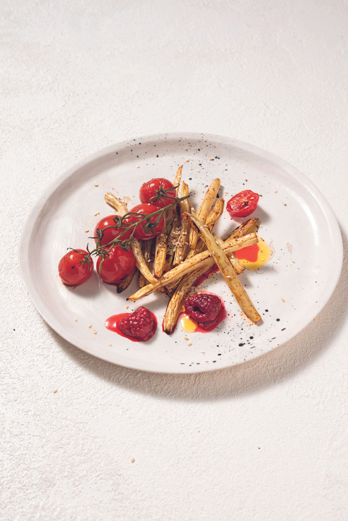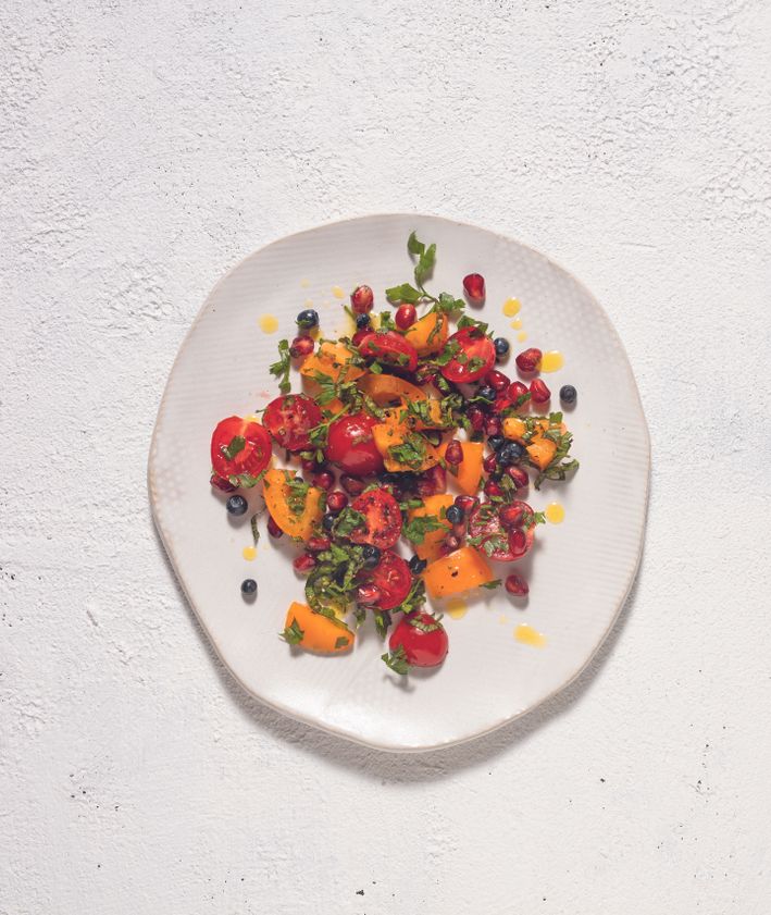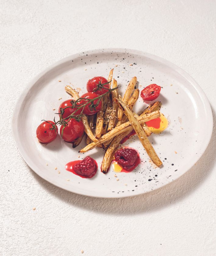 "alt": "Przepis na pieczone warzywa z halloumi, oliwą truflową i ziołami (fot. Rafał Meszka)",