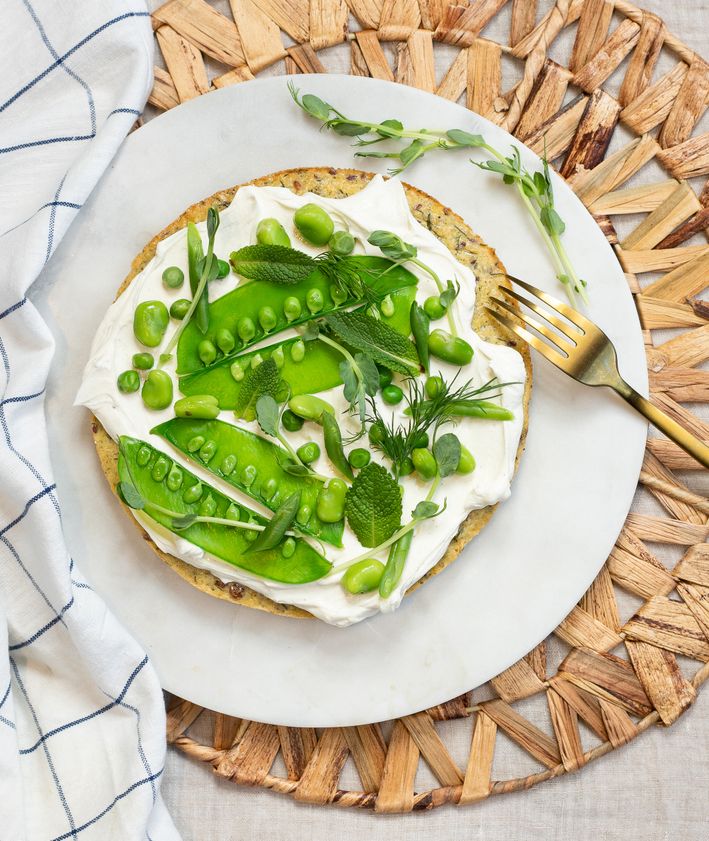 "content": "<p>Tartę układamy na talerzu, nakładamy na nią salsę z kiwi i awokado. Dekorujemy ziołami.</p>",