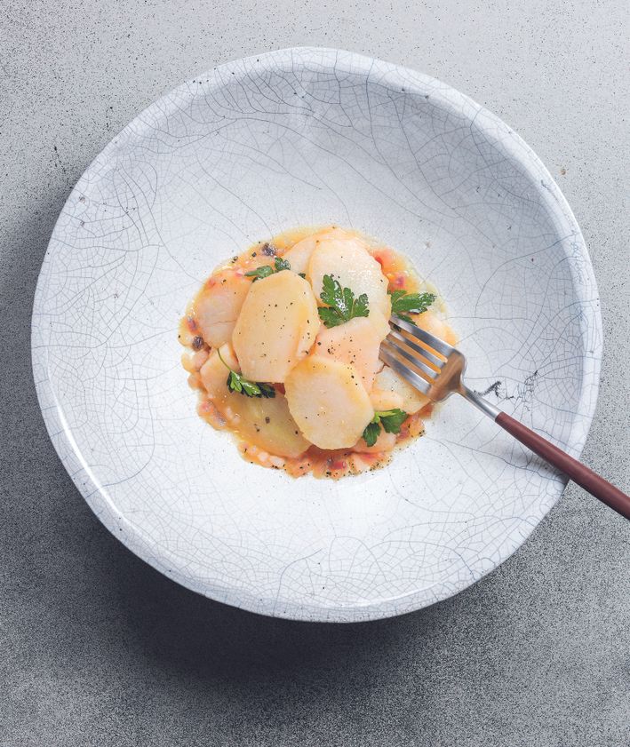 "alt": "Bibenda. Palona kapusta w korzennym sosie pomidorowym z karmelizowaną tahiną (fot. Maciek Niemojewski)",