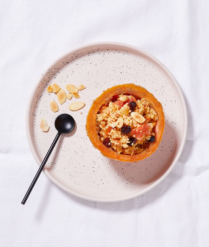 "meta_description": "Sposób na wegańskie, zdrowe i niskokaloryczne śniadanie. Zobacz, jaką kaszą nafaszerować grejpfruta i z czym go najlepiej podać.",