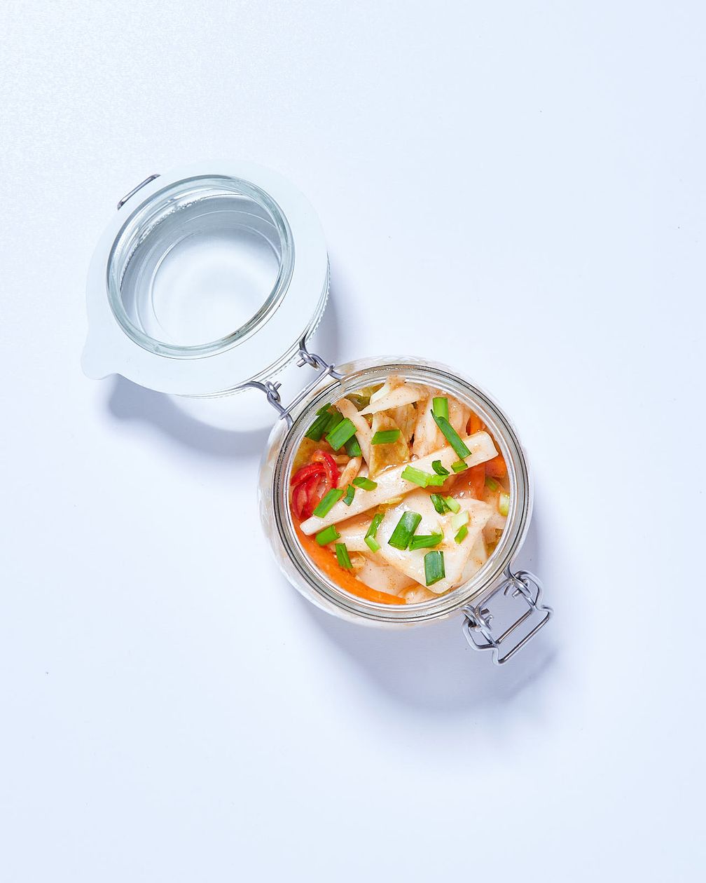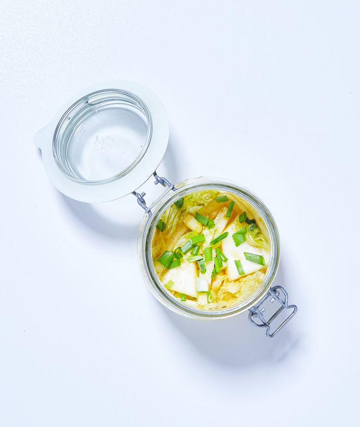"content": "<p><span>Następnego dnia odkręcamy słoik i dociskamy zawartość. Zakręcamy i odstawiamy. Czynność powtarzamy następnego dnia, ale po zakręceniu wstawiamy do lodówki. Co drugi dzień możemy docisnąć zawartość. Kimchi powinno być gotowe po tygodniu, ale lepiej zaczekać przynajmniej dwa tygodnie.</span></p>",