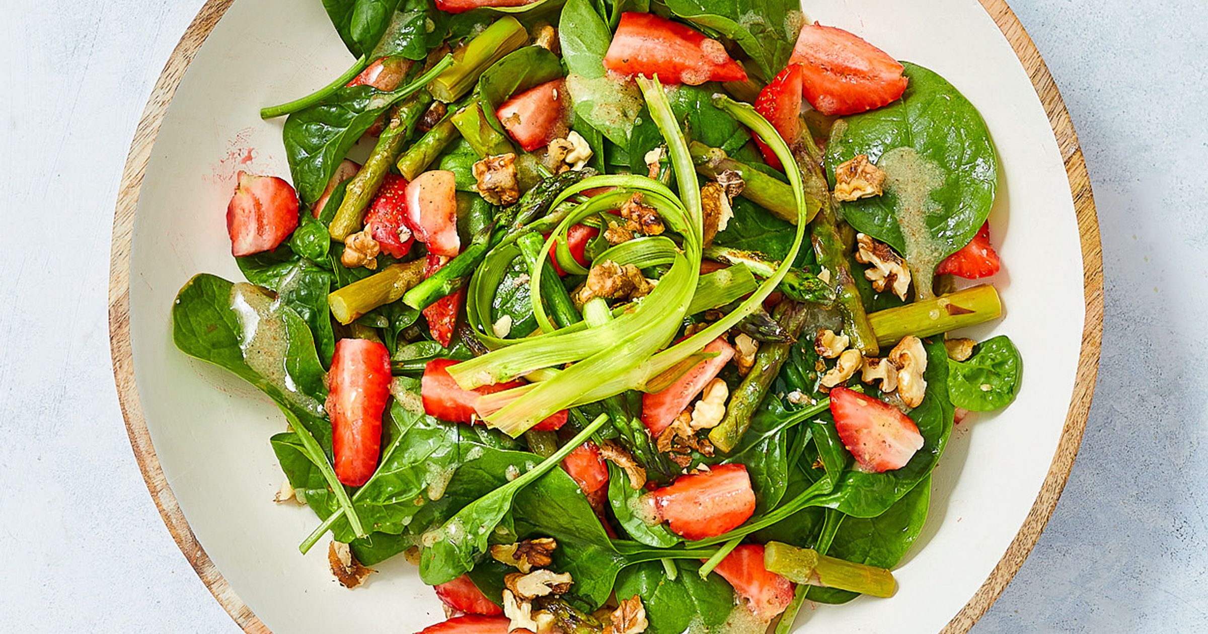 "content": "<p>Na sałatę wykładamy wystudzony rabarbar, pokrojone truskawki, uprażone orzechy i grillowany ser. Polewamy obficie dressingiem truskawkowym i dekorujemy listkami świeżej mięty.</p>",